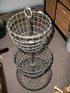 Today - it's Goodwill. I spent $14 and got a large crystal bowl with a silver plate rim (stamped ENGLAND), an awesome metal three tier basket (perfect for the soon to happen office make-over) and a wood mug holder (which I've been looking for). Oh and a cool silverplate platter / tray sort of thing that I will post as soon as I get around to taking a photo of it.